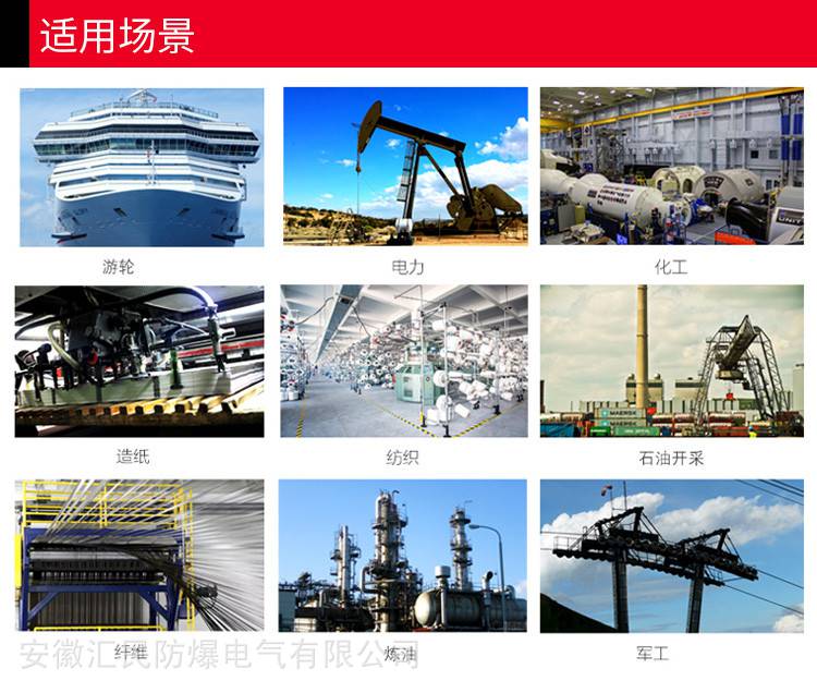 5.適用于石油石化、化工、釀酒、醫(yī)藥、油漆、紡織、印染設(shè)施等爆炸性危險環(huán)境。